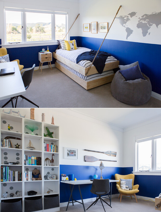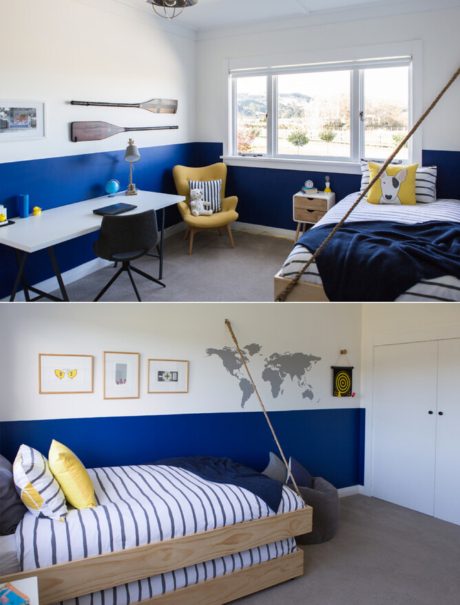 A fun and lively bedroom created for a teenager. Bright, bold, masculine colours with the use of wood and rope for added texture and warmth.
